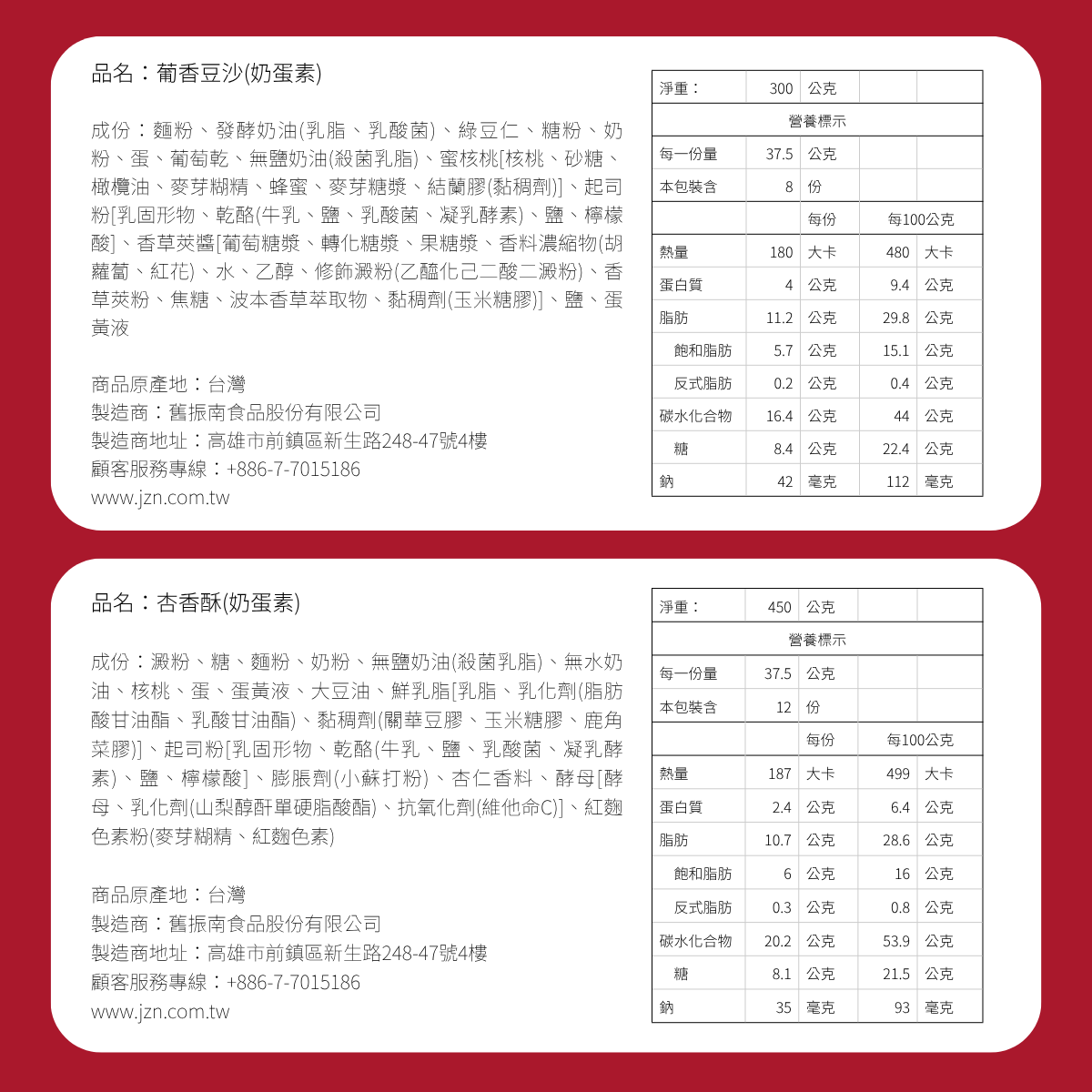 ● 棗泥核桃(奶蛋素):純正黑棗脫皮去籽,加州核桃經烘烤香氣濃郁。