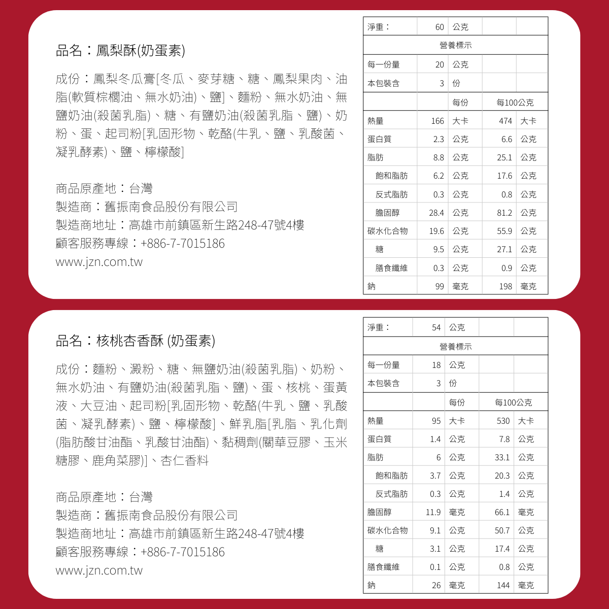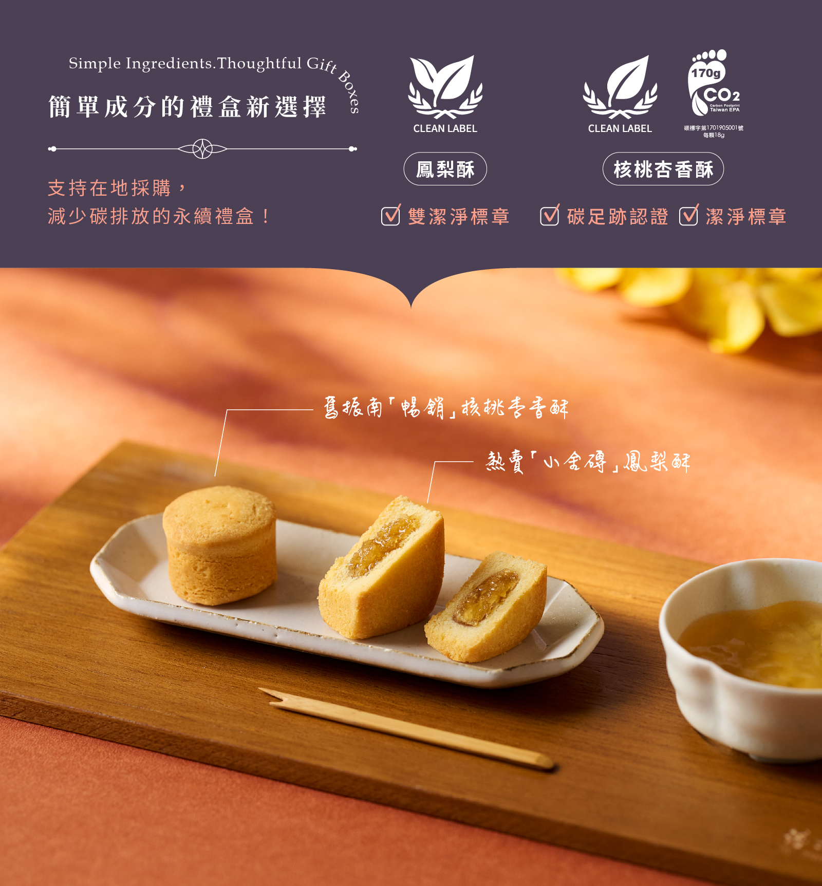 ※ 鳳梨酥雙潔淨標章認證、核桃杏香酥潔淨標章認證,為身體減少負擔!