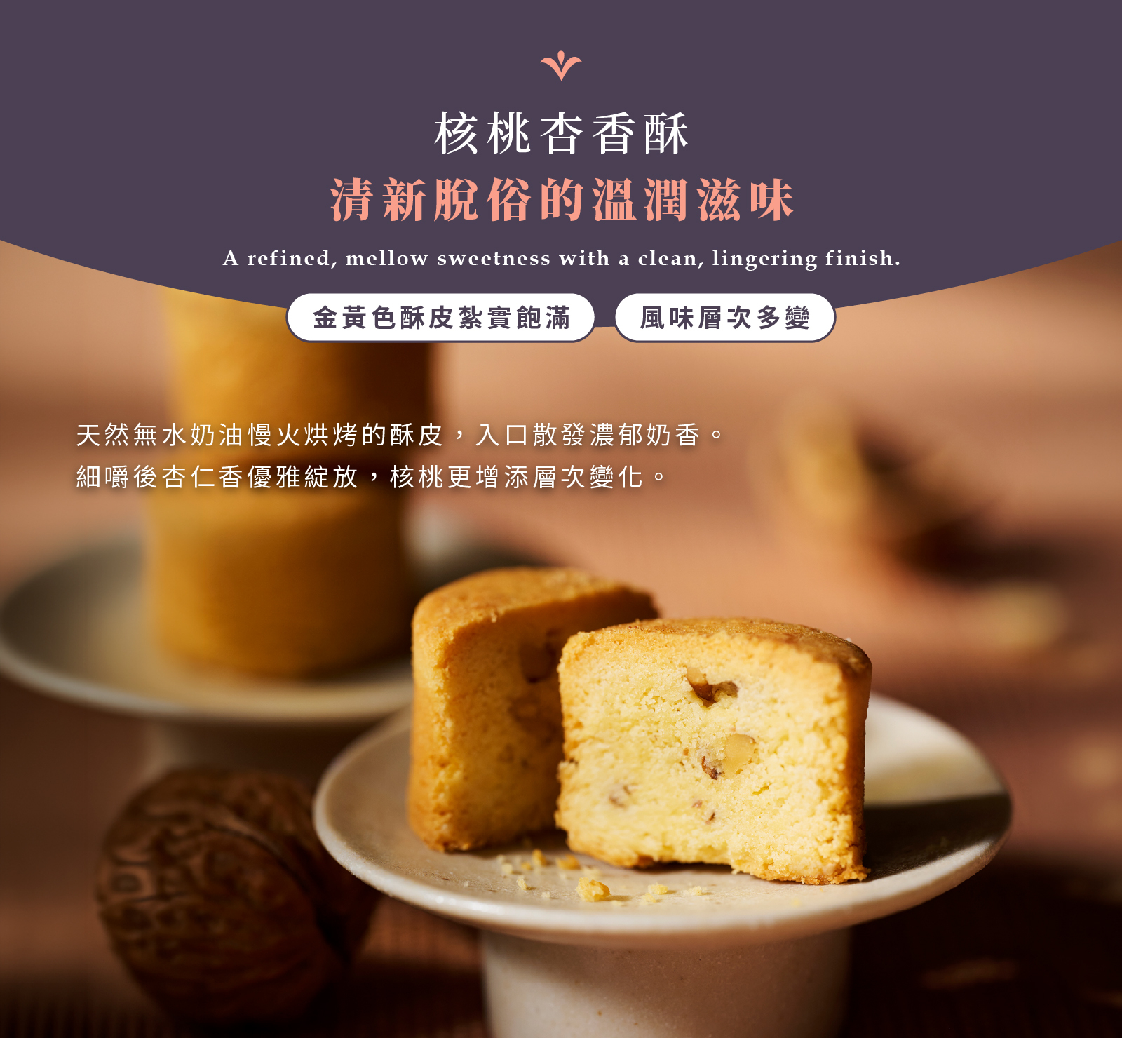 杏仁清香搭配整顆核桃入餡,溫潤有層次