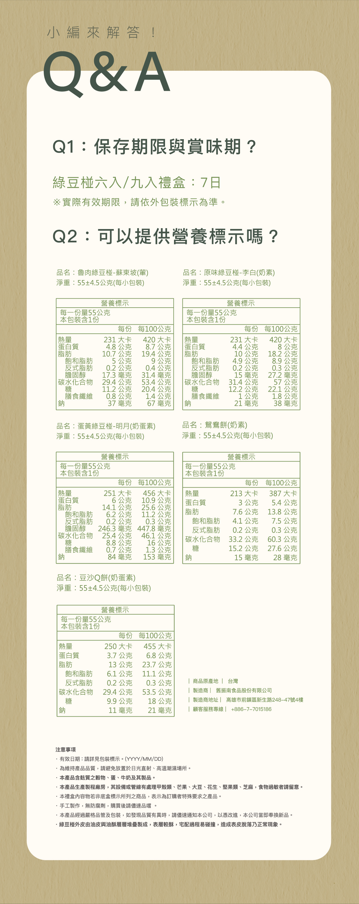 ※ 綠豆椪外皮由油皮與油酥層層堆疊製成,表層較酥,宅配過程易碰撞,造成表皮脫落乃正常現象。
