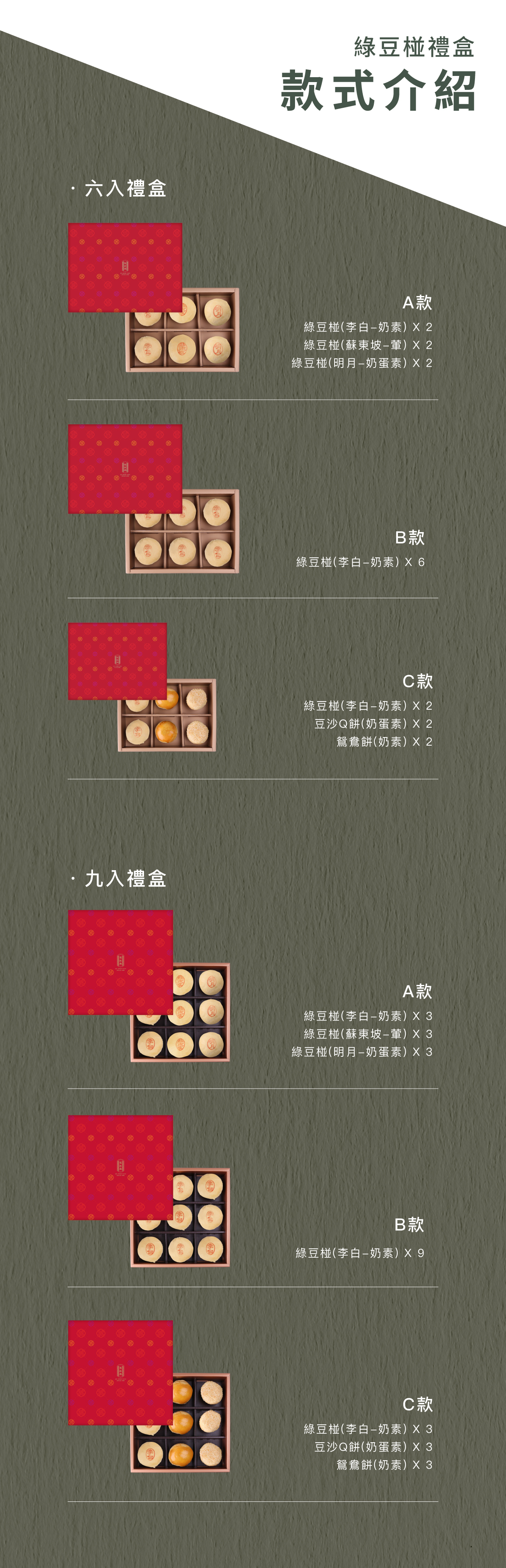 ・人氣口味綠豆椪搭配而成的綜合禮盒