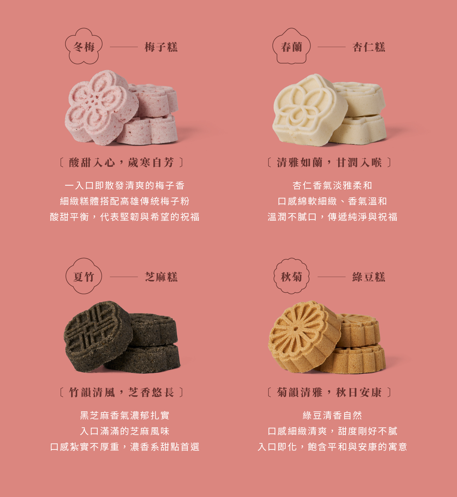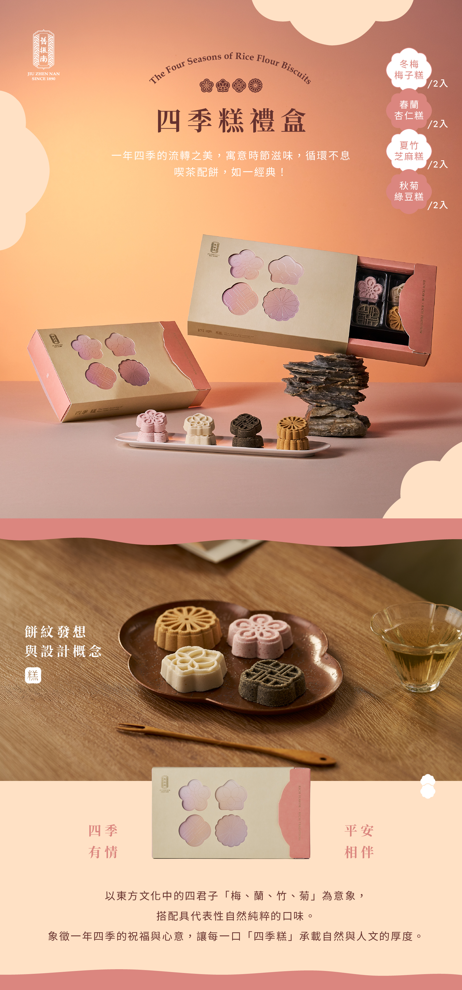 ・以東方文化中的四君子(梅、蘭、竹、菊)為意象,象徵四季祝福與心意
