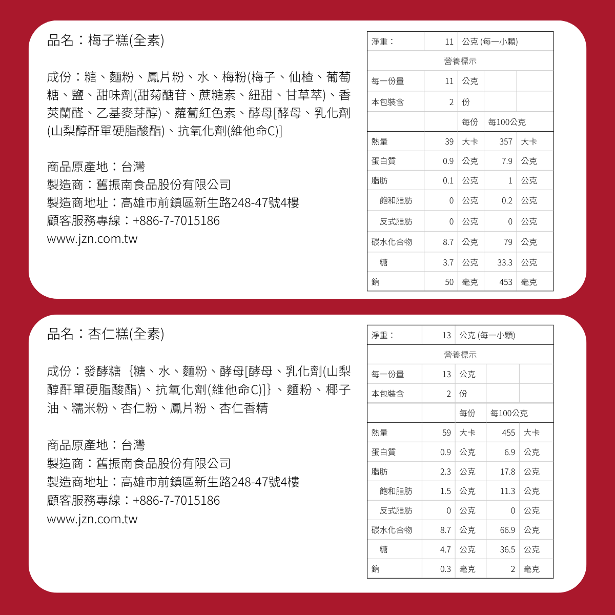 ・杏仁糕 x 2 + 芝麻糕 x2 + 綠豆糕 x2 + 梅子糕 x2
