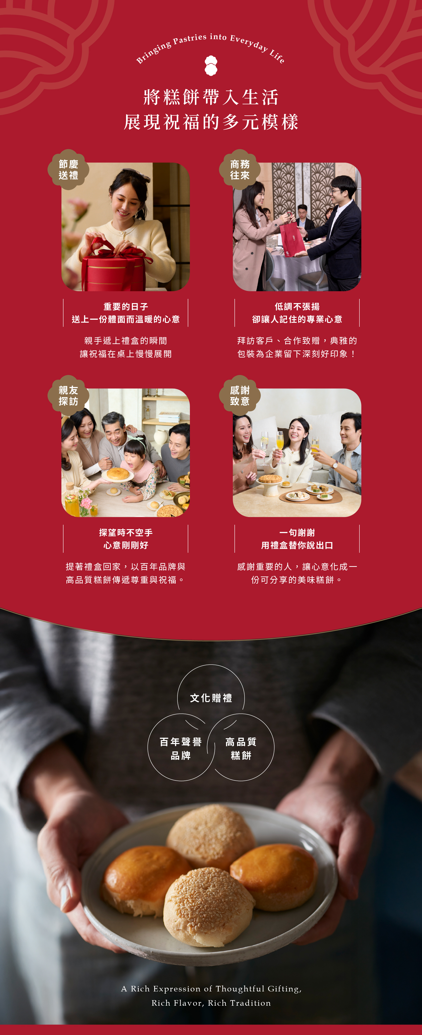 舊振南餅店創始於西元1890年(清光緒16年),傳承百年手工製餅技藝,將漢餅精神價值,演繹在送禮哲學上,讓每一份舊振南禮品,都能觸動送禮者與收禮者的內心,舊振南,將台灣味道與在地特色推廣到世界各地。身為見證歲月流轉的百年品牌,無論是伴手禮、節慶禮盒,或精緻的中式喜餅,皆能感受到舊振南漢式糕點文化精神的重視。近年來以精緻的烘焙體驗課程與有趣的禮俗活動,將台灣文化記憶,感染更多海內外朋友,引領一個更為重視禮數的生活品味。