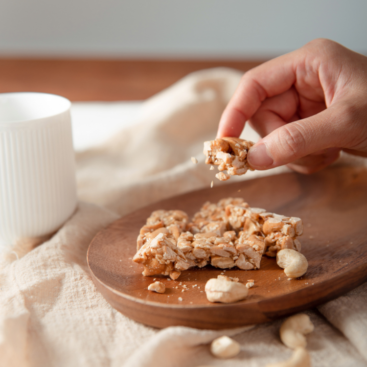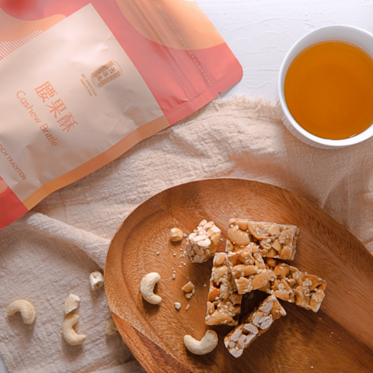 腰果酥採用嚴選堅果與熬煮精質的麥芽糖漿翻炒,並混入精選白芝麻粒,每口都能咬到飽滿分明的腰果,香氣自然、酥脆不黏牙,絕對是一口接一口的熱門零嘴。