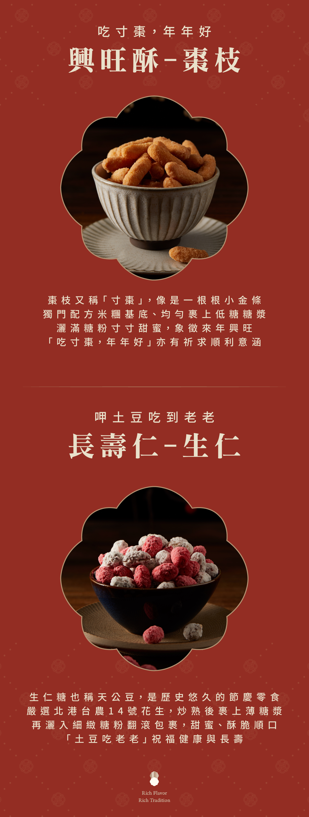 象徵吉祥寓意的傳統零嘴,每一口都充滿年味,「吃甜甜過好年」越吃越涮嘴的年節必吃好滋味。