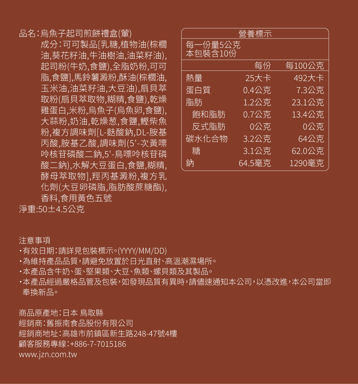 烏魚子起司煎餅禮盒7盒組,附春節禮盒專用提袋。