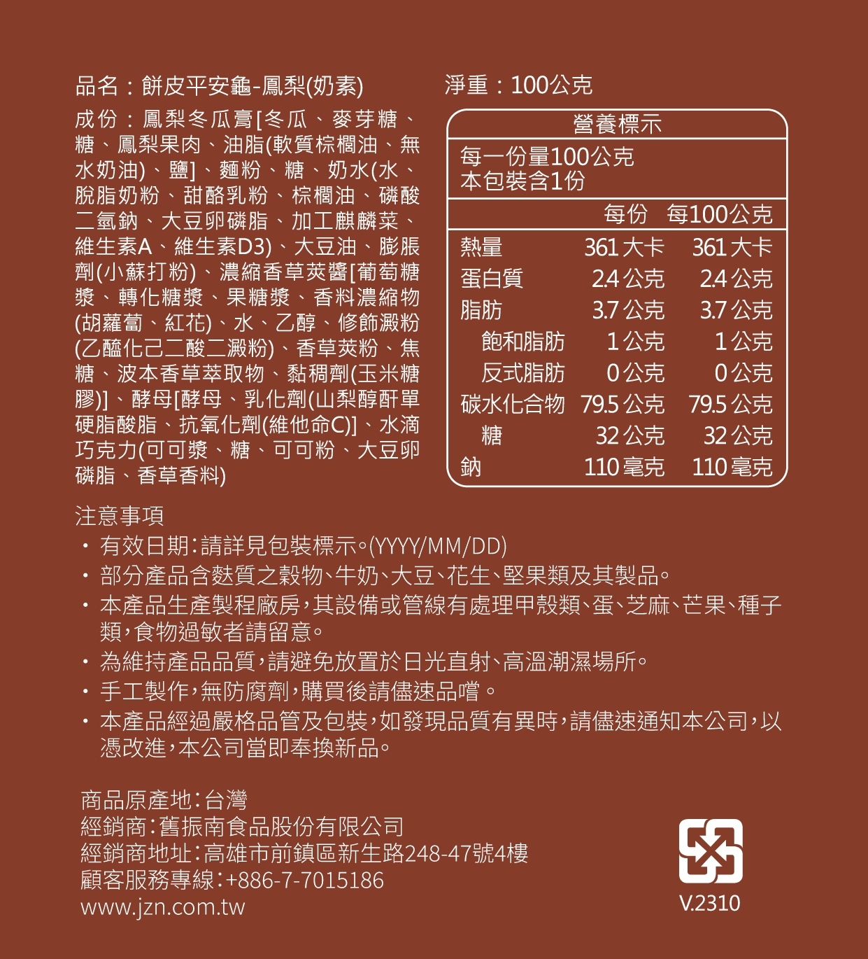 平安龜-鳳梨(奶素)*6盒(不含提袋)。