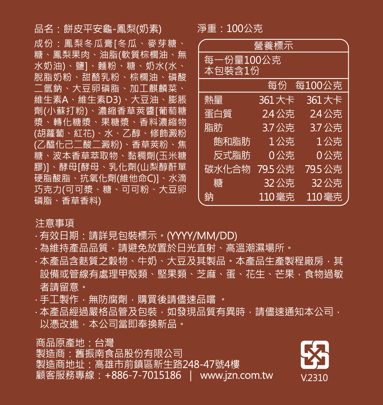 平安龜-鳳梨(奶素)*1