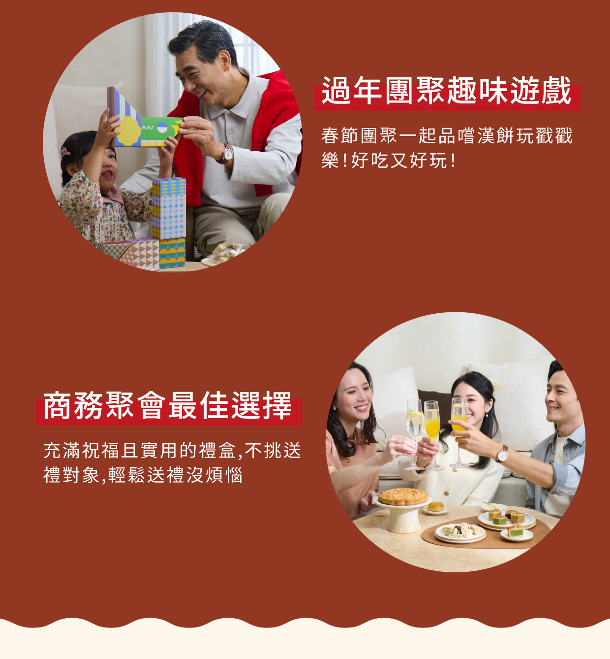 春風拂面,彩帶飛舞,共譜年節喜氣,也牽動家人團聚的思念情意。農曆新年是家庭團圓的重要時刻,與親友共享漢餅,體現濃濃親情和溫馨的節日氣氛。