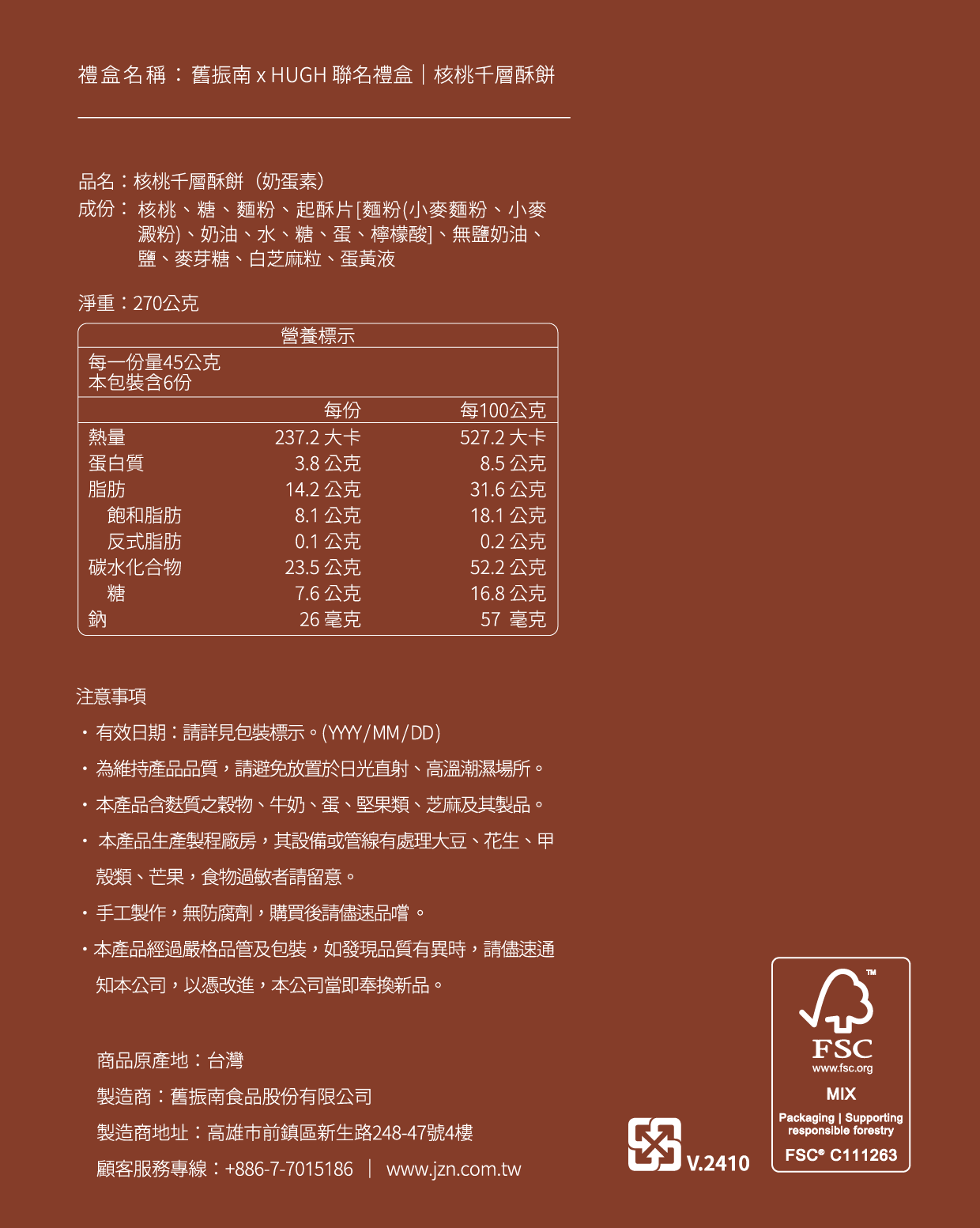 HUGH核桃千層酥餅禮盒6盒組,附春節禮盒專用提袋。