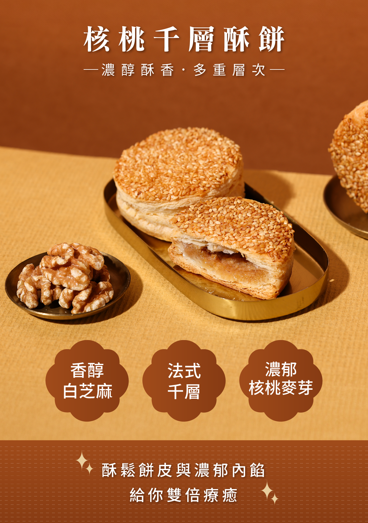 .融合台灣傳統甜燒餅和核桃酥餅的創新甜點
