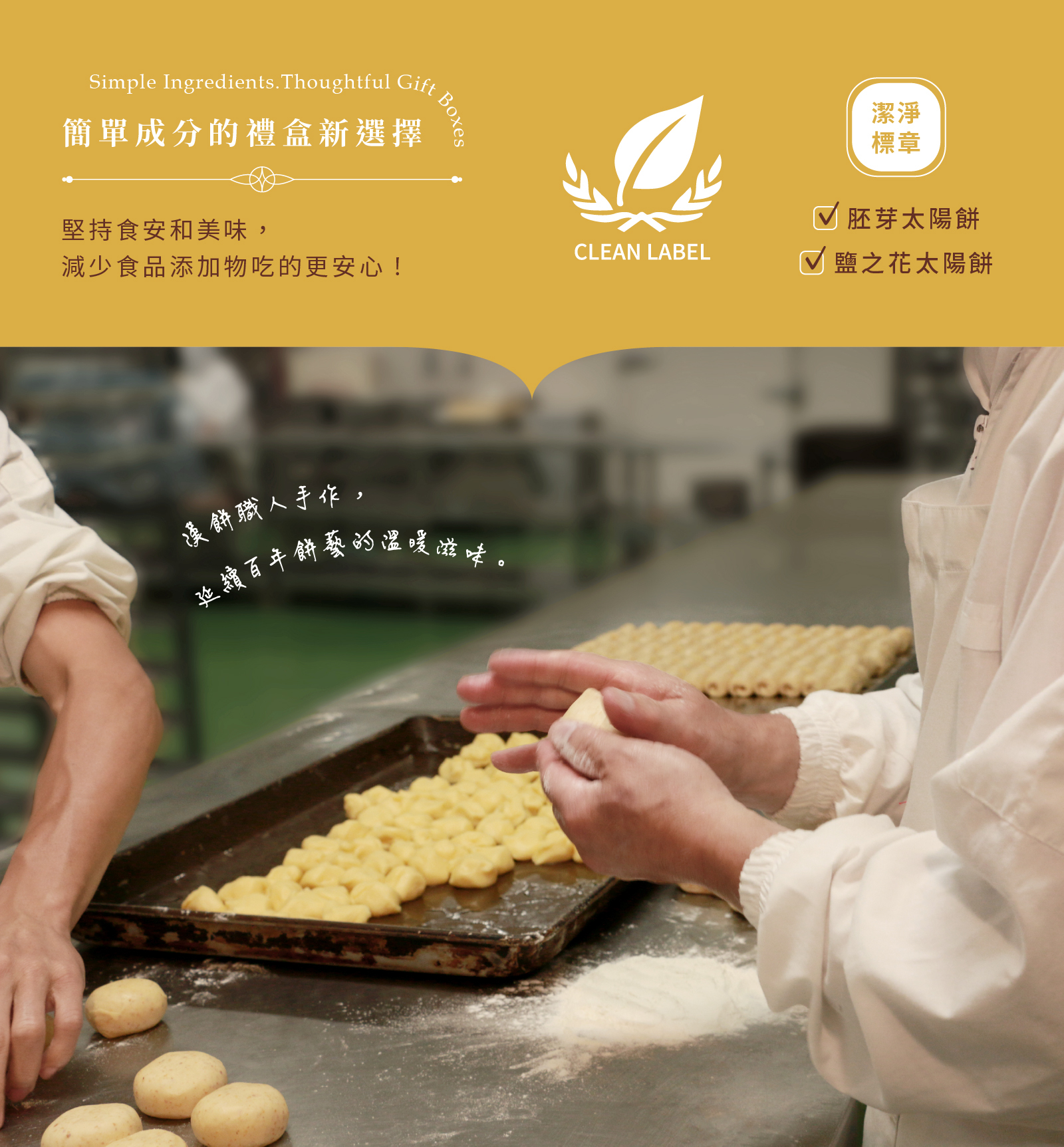 太陽餅又稱為「麥芽酥餅」,是將傳統酥餅中的餡心改為以麥芽糖及奶油為主的糖餡演變而來。外皮的麵糰揉得厚薄適中,內餡則是奶香濃郁,吃起來不黏牙也不膩口的奶油麥芽內餡,外皮與內餡呈現完美比例,每咬一口,都是藏不住的美味,吃完一片絕對還會有想再吃第二片的渴望!使用進口法國布列塔尼Guerande地區所產的鹽之花,彌足珍貴(每50平方公尺的鹽田才能結晶出不到500公克),圓潤鹹味,並散發紫羅蘭花香甜的餘韻。金黃酥薄餅皮裹藏奶油麥芽糖餡,表面輕撒法國頂級鹽之花,柔潤海鹽中和濃郁奶香,交織獨特細緻風味。百年職法工藝,傳統風味太陽餅佐法國頂級鹽之花,迸出優雅且細緻的口感。跳脫中式太陽餅,飄法式優雅迷人風味!優雅質感送禮,顯個人品味!