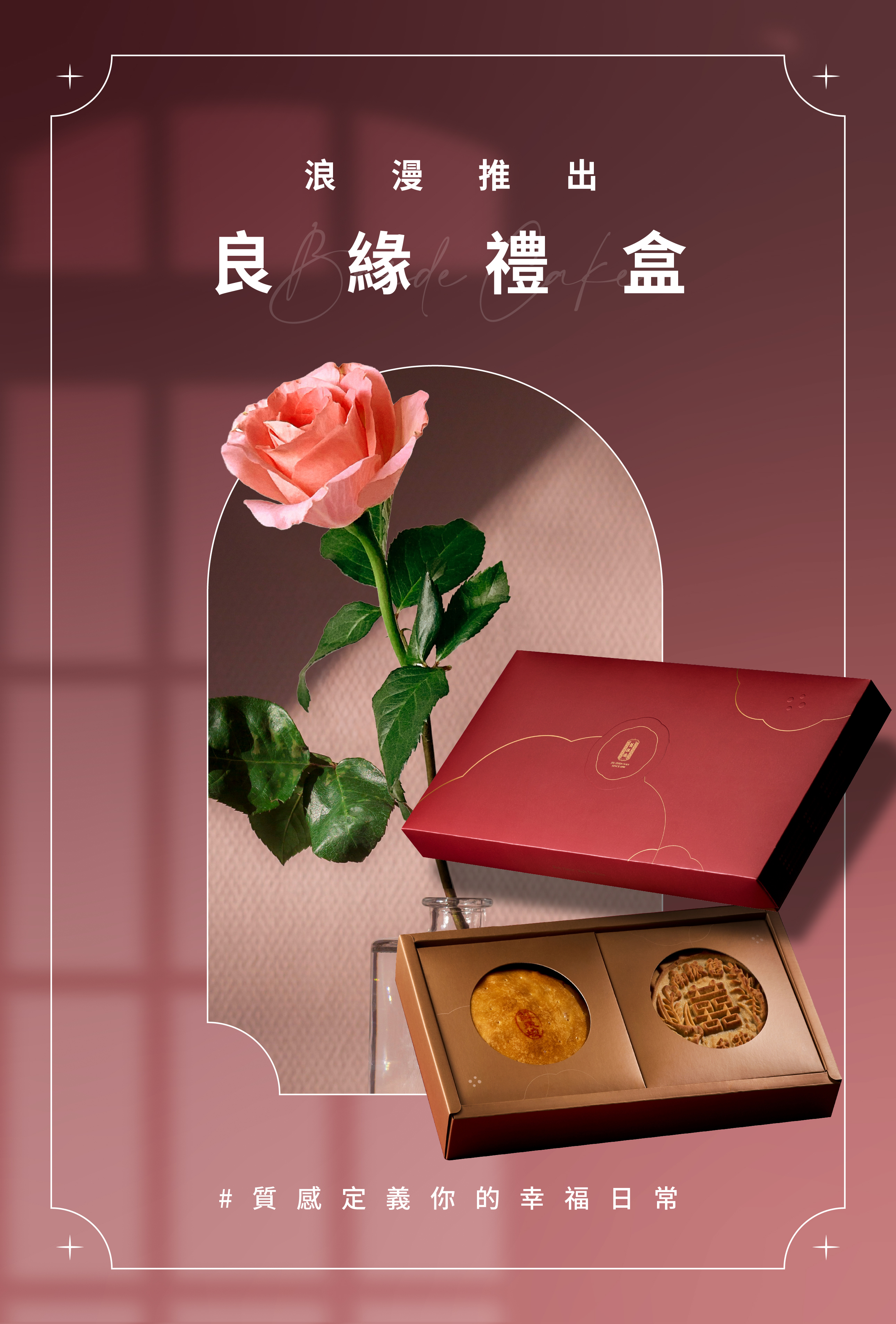 旧振南的良缘礼盒,以雅致家徽花纹样象征爱情美丽花开成果,传递浓浓的喜气。一盒可以品嚐到两种不同口味的汉饼,不被单一口味选择侷限,可以照顾到收礼方各种不同口味的喜好,纳入成对的圆形中式喜饼,祝福新人双双对对、圆满富贵,传递漫天绽放的浓浓喜庆。