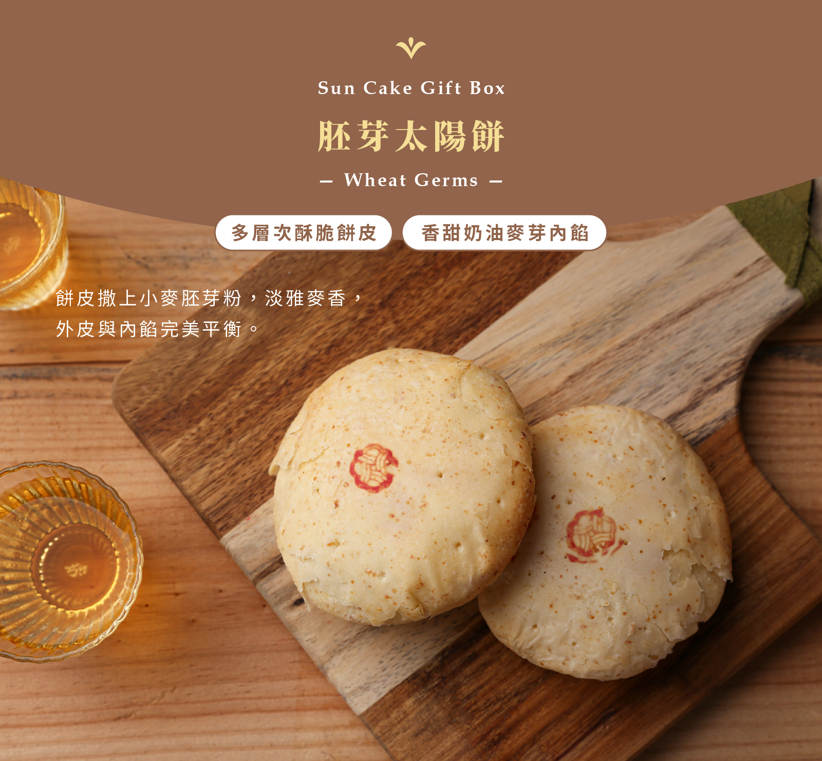 .胚芽太陽餅:餅皮撒上小麥胚芽粉,嚐起來有淡淡胚芽香。